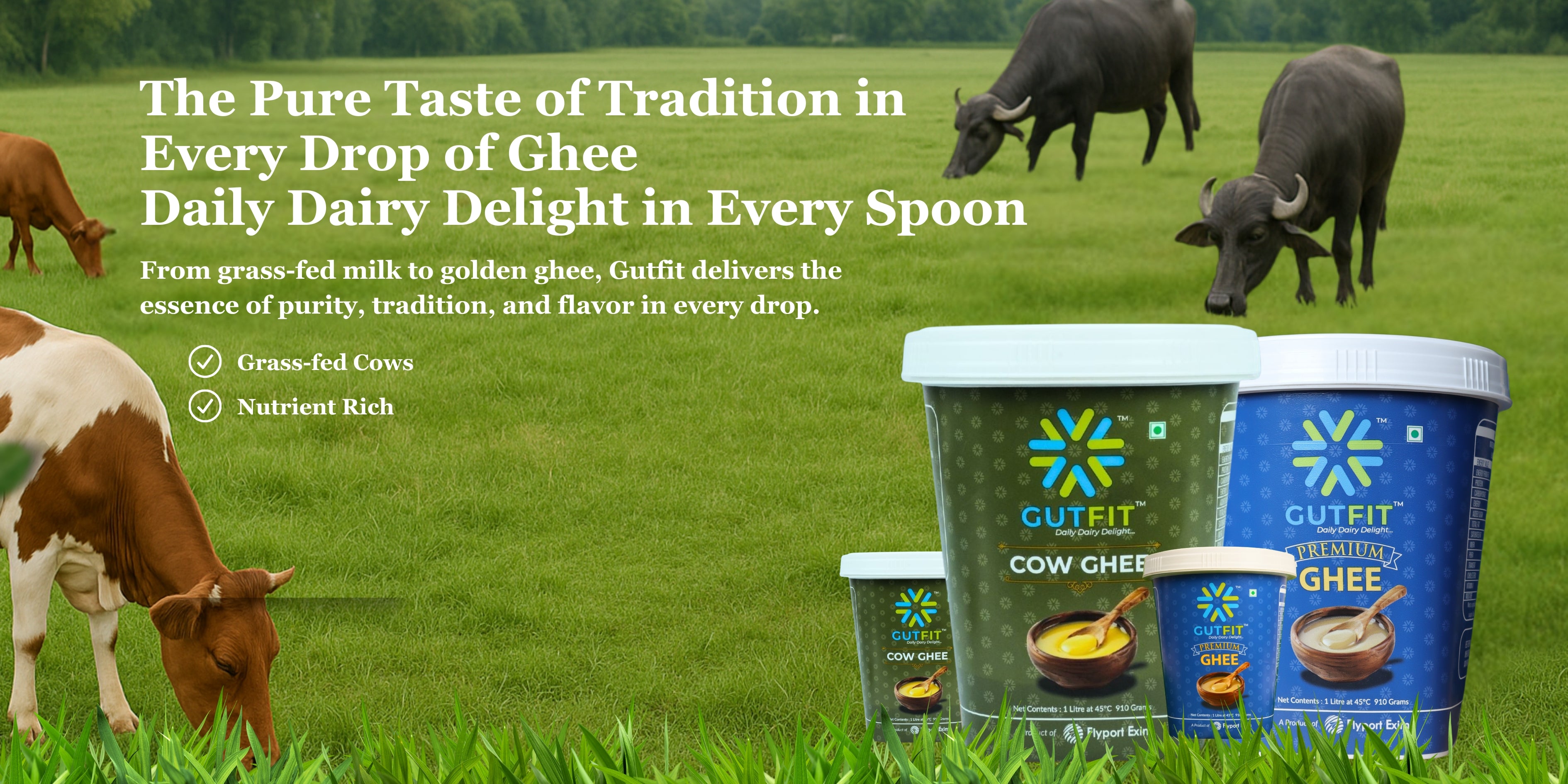 GUTFIT Cow & Buffalo Ghee β Pure superfoods rich in healthy fats that fuel energy, support digestion, balance hormones and add natural nourishment for daily health and taste.